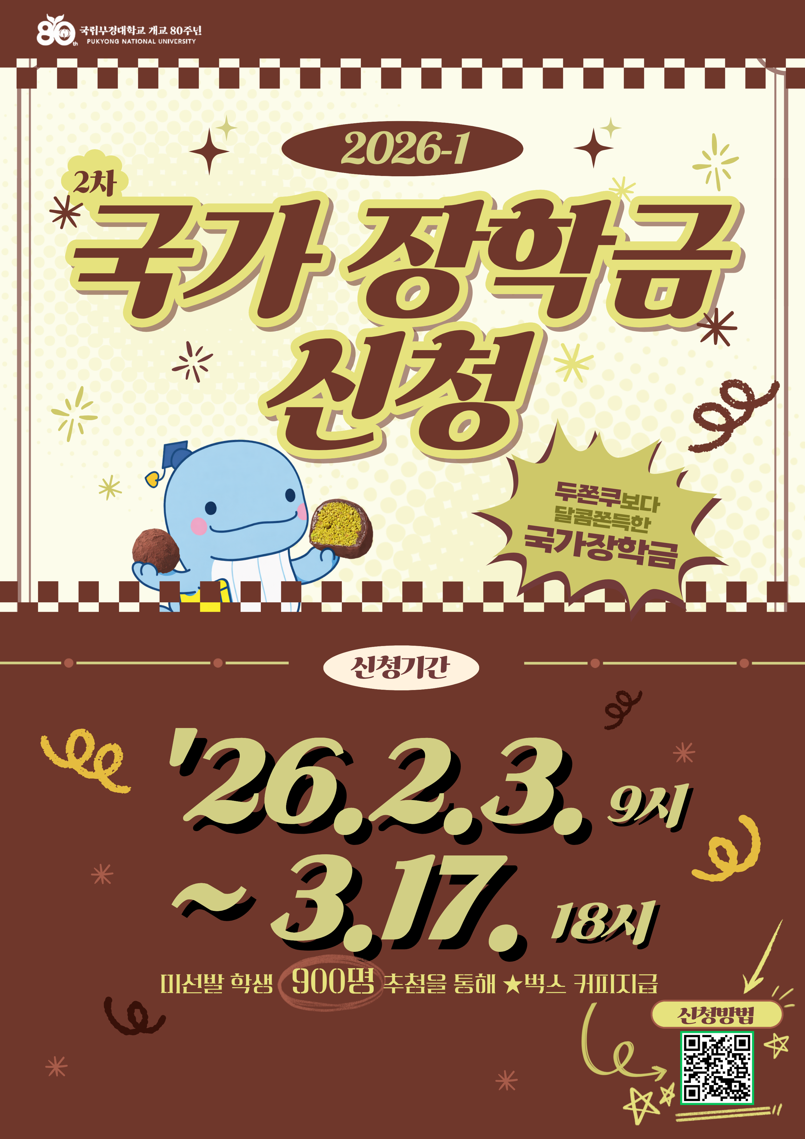 2026-1학기 국가장학금 2차(최종) 신청기한이 임박함에 따라 신입생 여러분께 관련 사항을 안내하오니, 국가장학금 미신청 학생은 반드시 기한 내 신청하여 국가장학금 수혜를 받을 수 있도록 하여 주시기 바랍니다.
